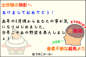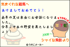 飛蔵の森 目出度いね!!!!!!! 快晴さんが作って下さったので私は特に何もしていないのですが。 4人いて私が一番アレな感じなんですが。 主催のはしくれとして頑張っていきたいと思います。 飛蔵が好きなんじゃい!!!! お前らもそうじゃろうが!!!!???ああ?? そうだと言ってくれ!!!頼む!! あ、あの…お願い致します…。 私は飛蔵が大好きです。 相変わらず蔵馬が可愛くて目にとまるたびデレデレグネグネする毎日です。 |